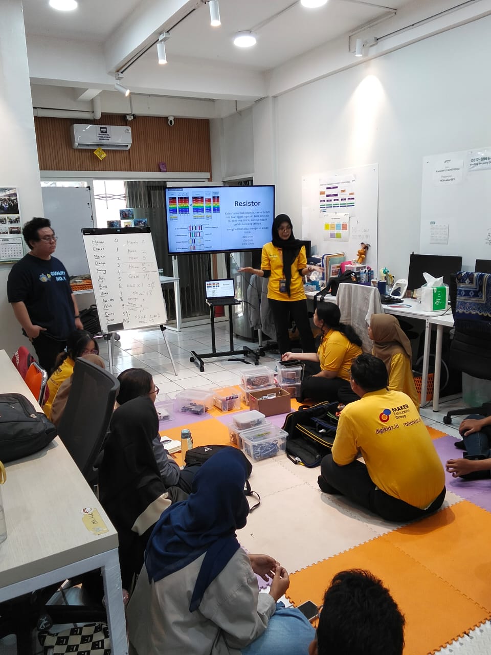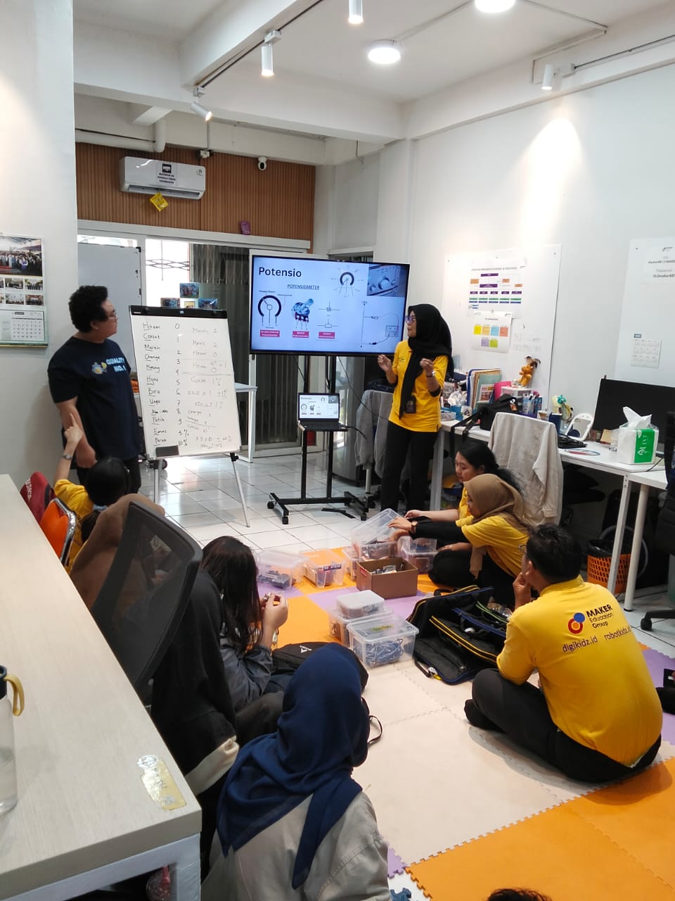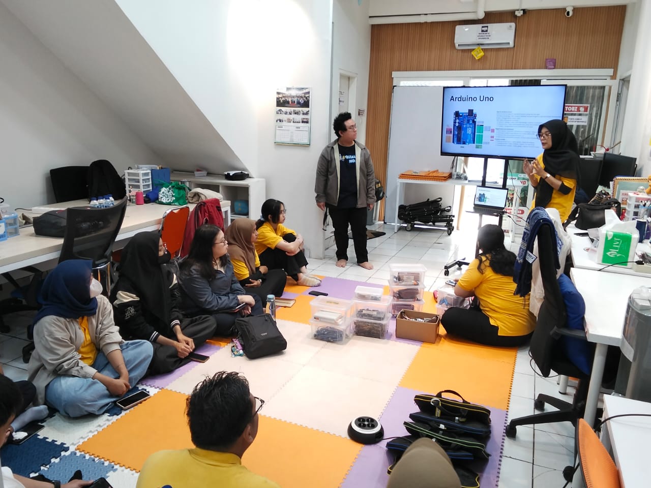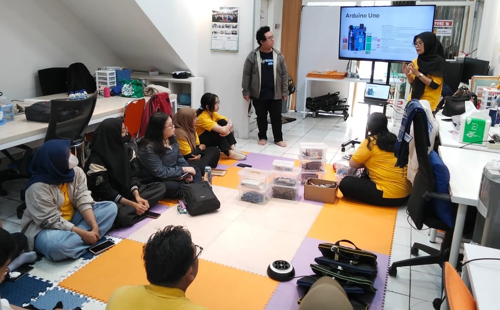 A deep dive into the physical components of an Arduino board followed, where participants learned about essential parts such as digital and analog pins, the microcontroller chip, USB connection, and power supply. Trainers demonstrated the functions of each component, ensuring that participants could identify their roles in building circuits and projects. By physically examining the board, learners gained confidence in connecting hardware and understanding how signals flow through the system.